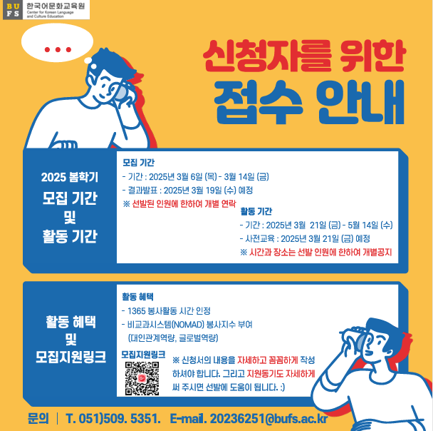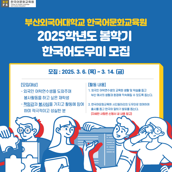 2025학년도 봄학기 한국어도우미 모집 홍보
