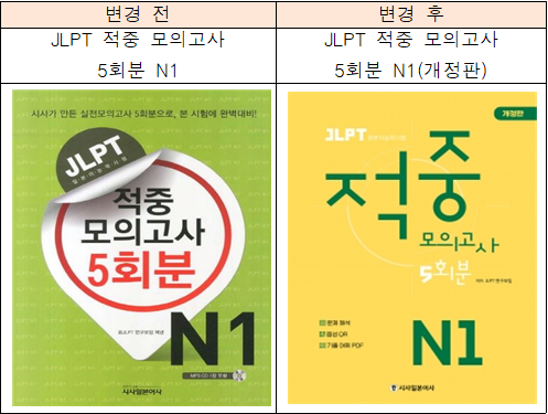변경 후 졸업시험 교재 : JLPT 적중 모의고사 5회분 N1 개정판