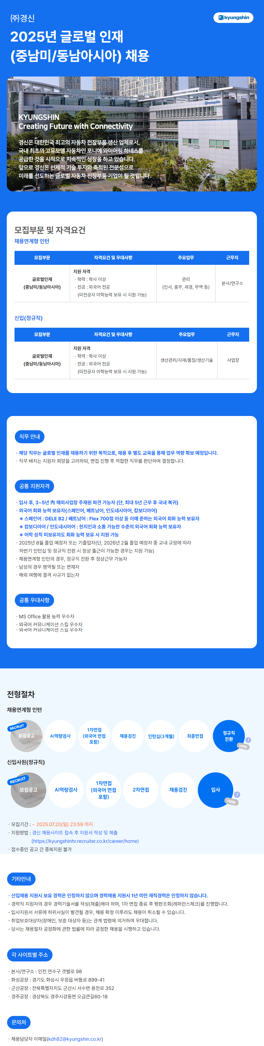 공고명 : (주) 경신 2025년 글로벌 인재(중남미/동남아시아) 채용