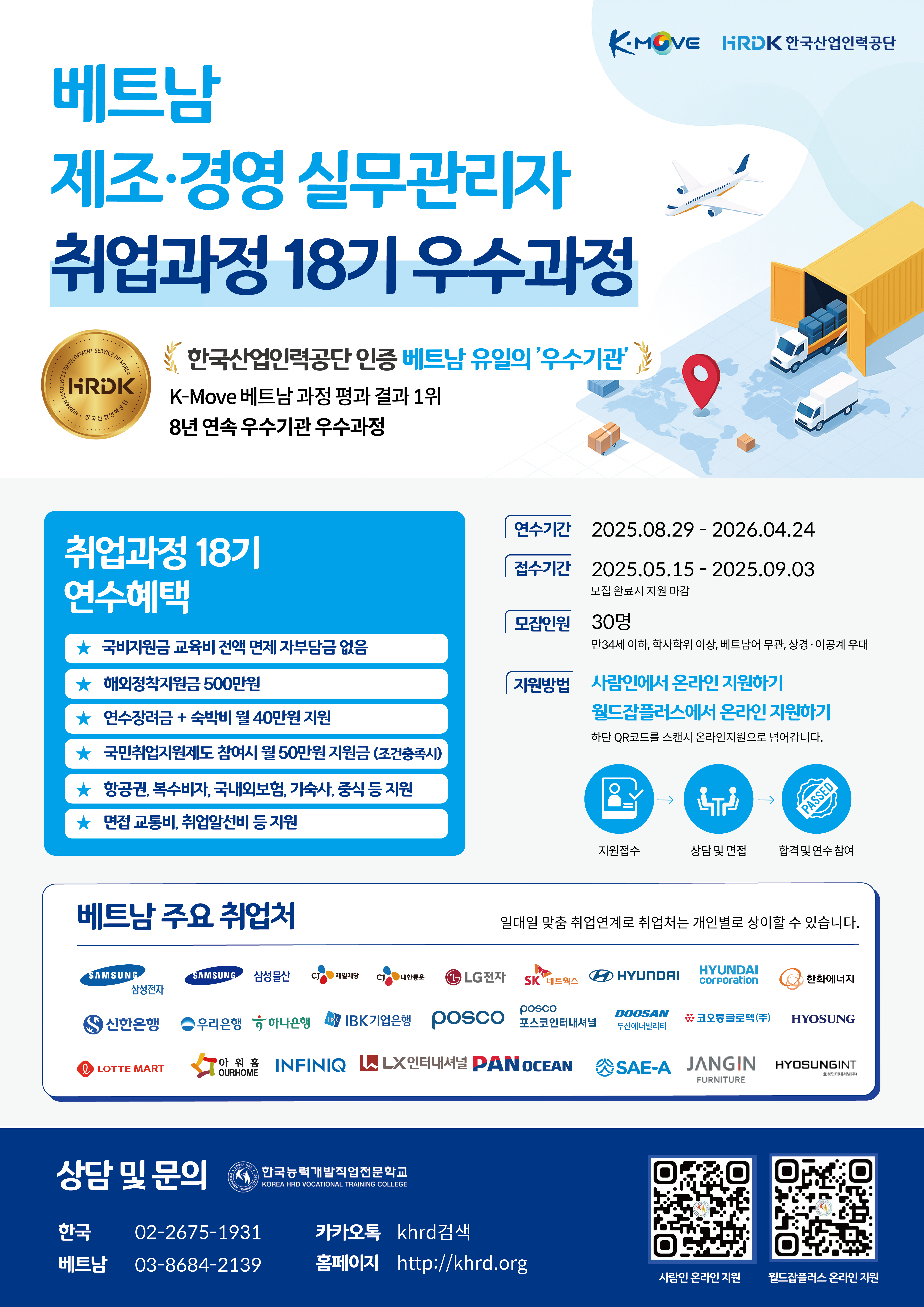 베트남 제조경영 실무관리자 취업과정 18기를 모집합니다!