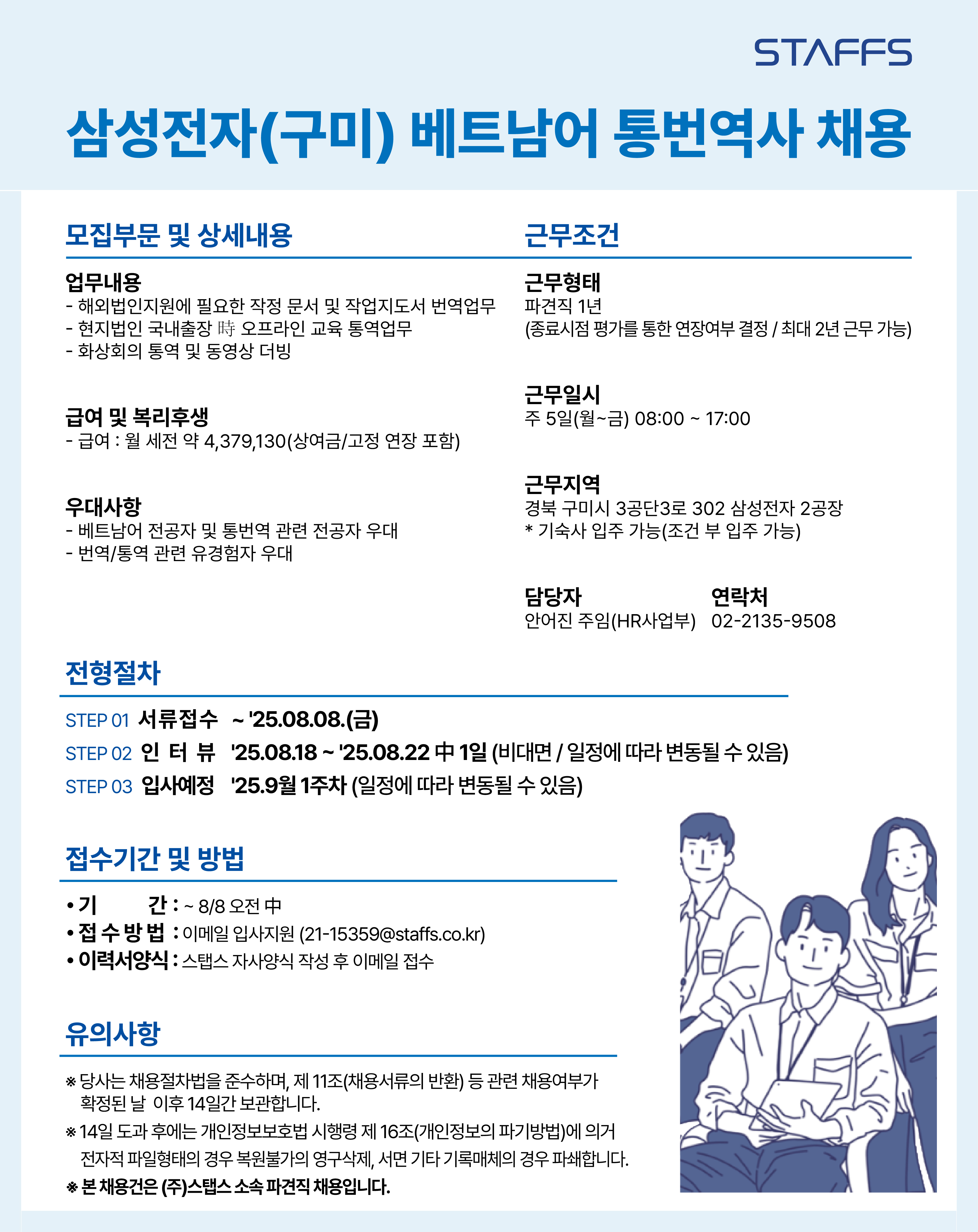 [삼성전자(구미) 스탭스 소속 파견직] 베트남어 통번역사 채용공고 안내