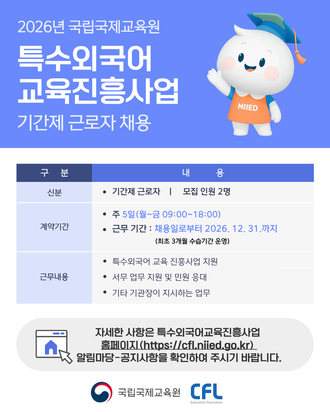 2026년 국립국제교육원 특수외국어교육진흥사업 기간제 근로자 채용 안내