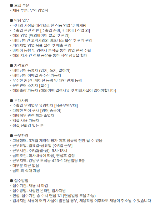 학과게시판 구인공고 [푸드아레나] 서울 강남구 무역회사 해외영업부 주식회사 푸드아레나 채용공고 베트남어과관리자2025. 12. 31조회수107 0 등록된 댓글이 없습니다. 2025학년도 전기 (2026년 …목록'GROUND.N 스토브리그 in…