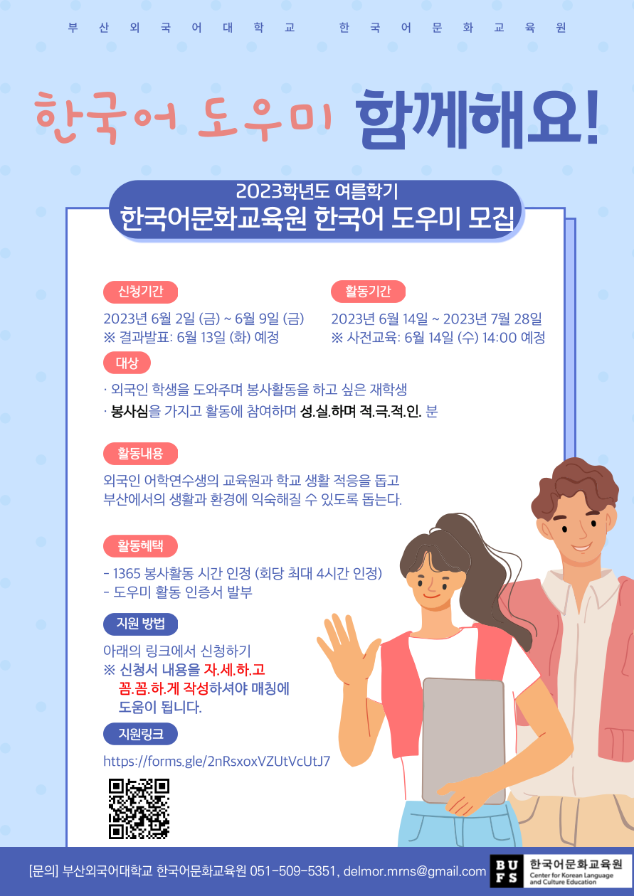 1. 프로그램명 : 2023학년도 한국어문화교육원 여름학기 한국어도우미