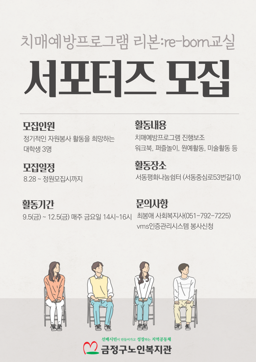 [금정구노인복지관] 치매예방프로그램 서포터즈 모집