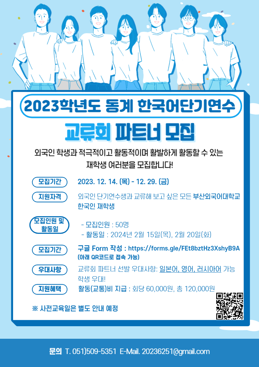 - 교류회 파트너: 연수생과 교류하고 싶은 마음을 가진 부산외대 한국인 재학생이면 누구나 가능