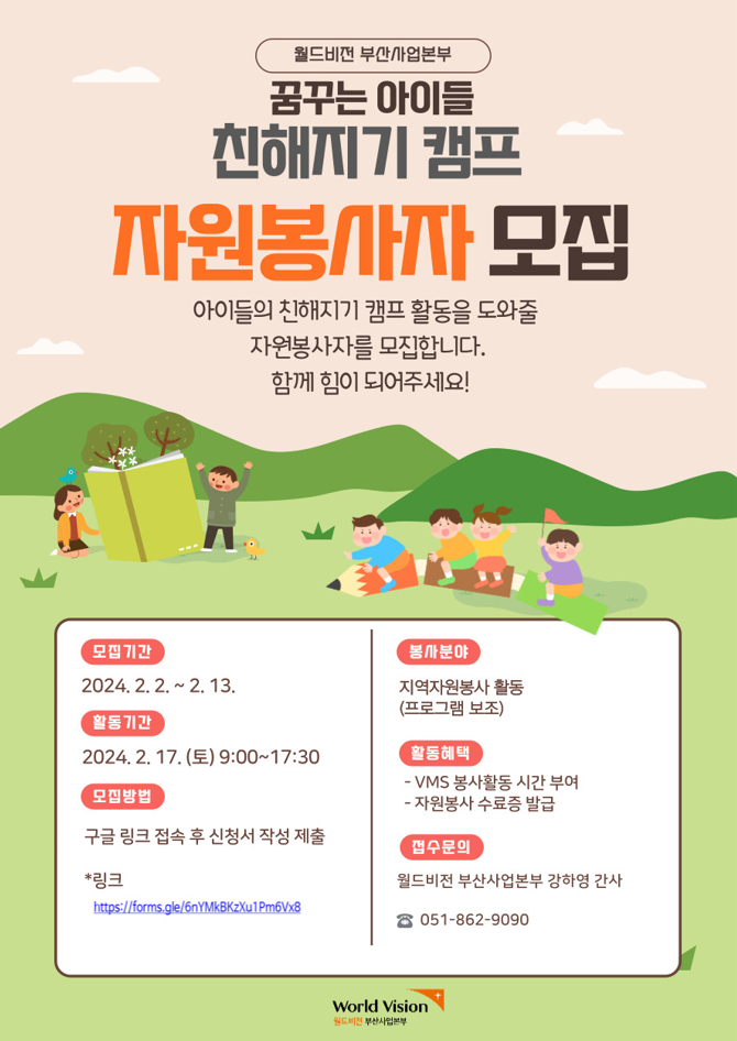 학과게시판 자원봉사 모집 월드비전부산사업본부 프로그램 자원봉사자 모집 사회복지학과관리자2024. 2. 5조회수356 0 등록된 댓글이 없습니다. 2024년 AAC 서포터즈 모집목록2024년 부산광역시일시청소년쉼터…