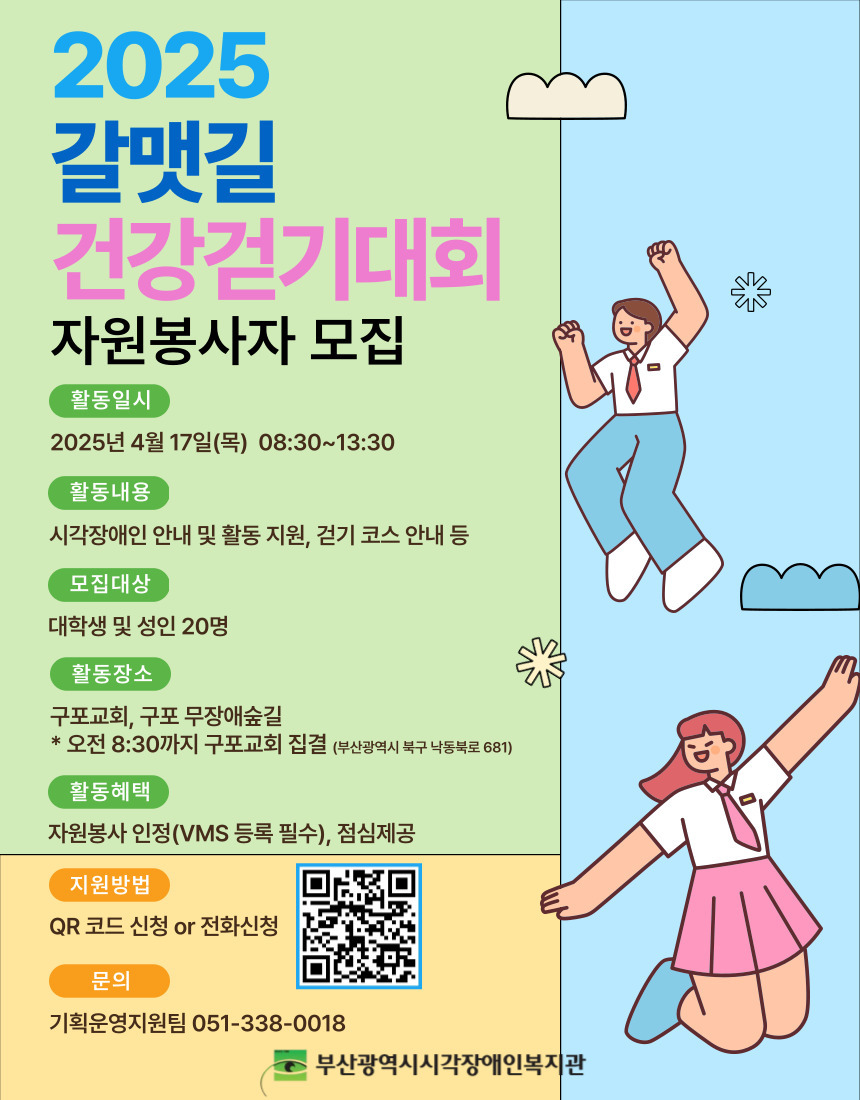 [부산광역시시각장애인복지관] 2025 갈맷길 건강 걷기대회 '함께 걷는 행복' 자원봉사자 모집